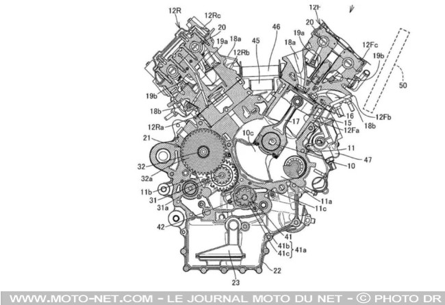 La découverte d’un shéma technique – type document de brevet – vient relancer la rumeur d’un tout nouveau quatre-cyclindres en V chez Honda, hypothèse évoquée depuis 2023. Cet inédit V4 rallumerait le flambeau d’une motorisation utilisée pendant plus de quatre décennies,  avant d’être abandonnée en même temps que les VFR. En 2025, une seule moto Honda fait encore appel cette architecture noble et performante : la RC213V de MotoGP.