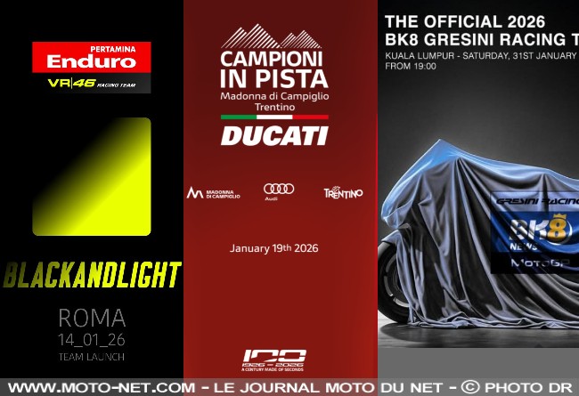 Puis ce sera le tour du team officiel : le champion du monde Marc Marquez et Francesco Bagnaia lanceront leur saison depuis la luxueuse station de ski de Madonna di Campiglio (Italie) le 19 janvier 2026. Enfin, le 31 janvier, l’équipe satellite Gresini dévoilera ses Desmosedici : une GP26 avec soutien officiel pour le vice-champion Alex Marquez et une GP25 pour Fermin Aldeguer. L’évènement se tiendra à Kuala Lumpur (Malaisie), juste avant les essais à Sepang (3 au 5 février).